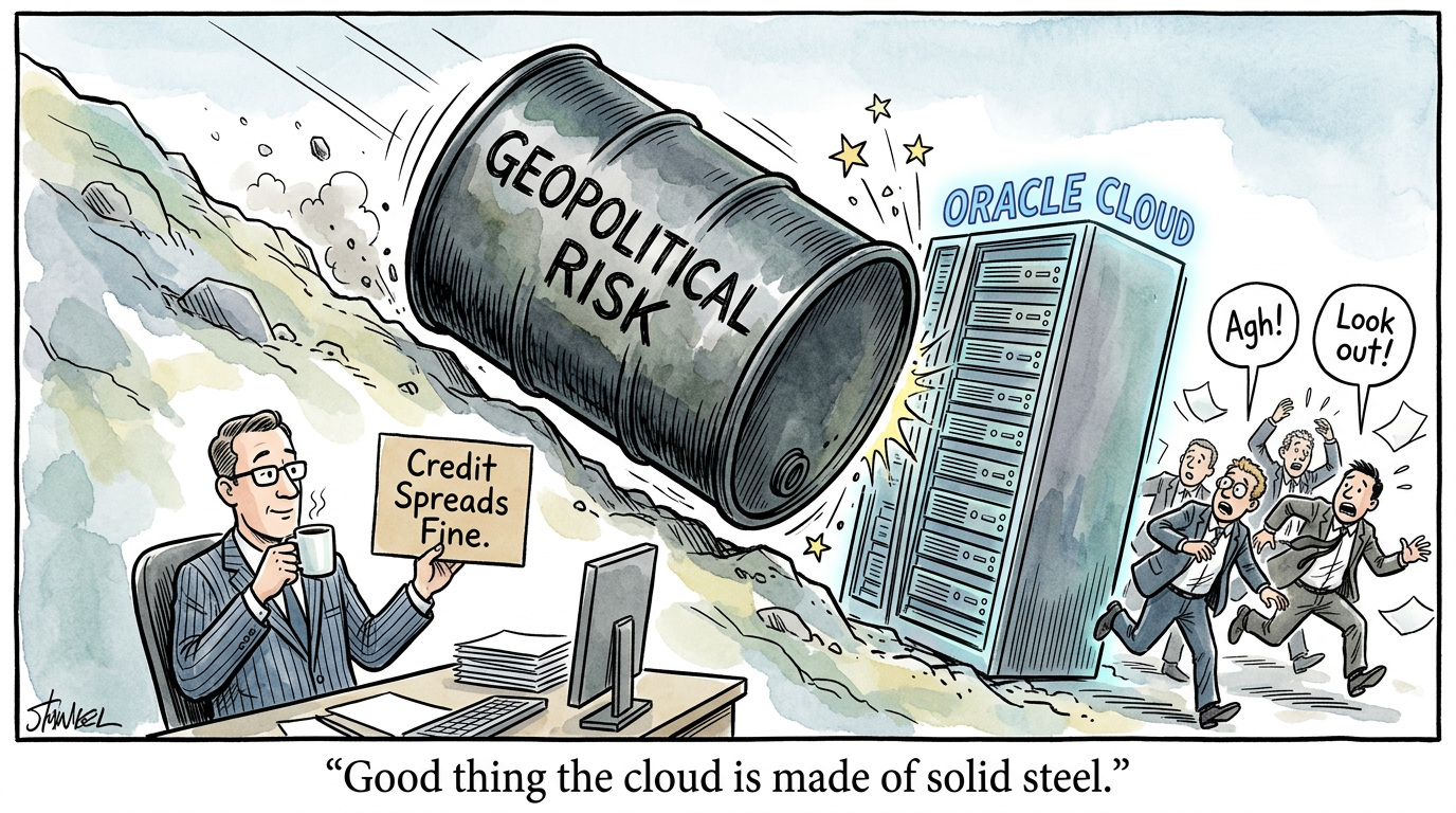 A fascinating divergence is unfolding across asset classes today as alarming geopolitical headlines clash with remarkably calm underlying macro data. The severe escalation in the Middle East, specifically the disruptions in the Strait of Hormuz, initially sent energy markets into a frenzy. Oil prices spiked to multi-year highs before nosediving on reports that the administration is considering direct intervention to secure the waterway. Amid this chaos, the technology sector found a massive fundamental anchor. Oracle delivered an explosive earnings beat driven by unprecedented cloud infrastructure demand, proving that the artificial intelligence capital expenditure cycle remains fully intact and capable of offsetting broader macro fears.